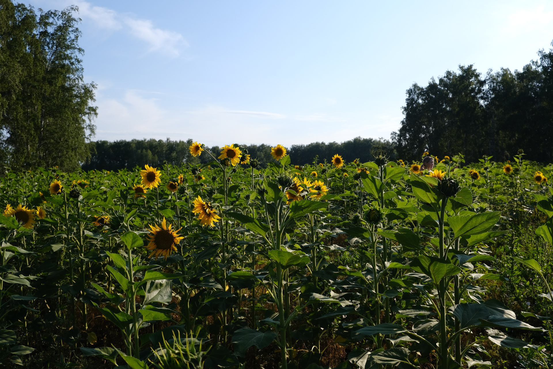 Год спустя, в 2025 году, в путешествии по Омску, было найдено подходящее место. Подготовившись, мы отправились на разведку. Как можно видеть на фотографиях ниже, было найдено 3 соседствующие локации: цветочное поле, желанные подсолнухи и поле с культурами.